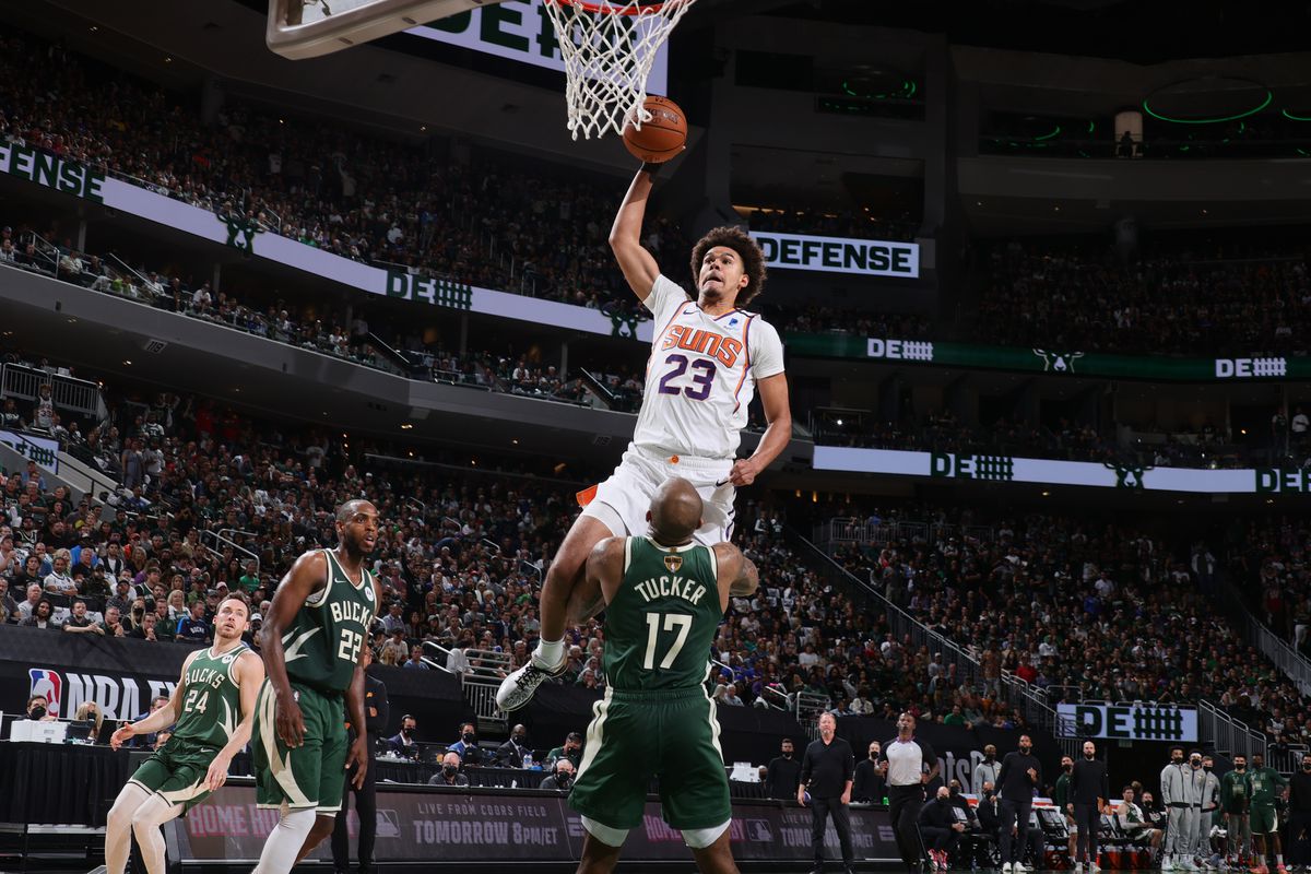 Remember what I said in the Game One recap about how we might have seen the best play in the series? Well, I was wrong, as what Cameron Johnson did to PJ Tucker is so unprecedented and incredible that the NBA almost immediately dubbed it the best dunk in the NBA Finals from the last five years. Here’s a standstill in time of the moment: