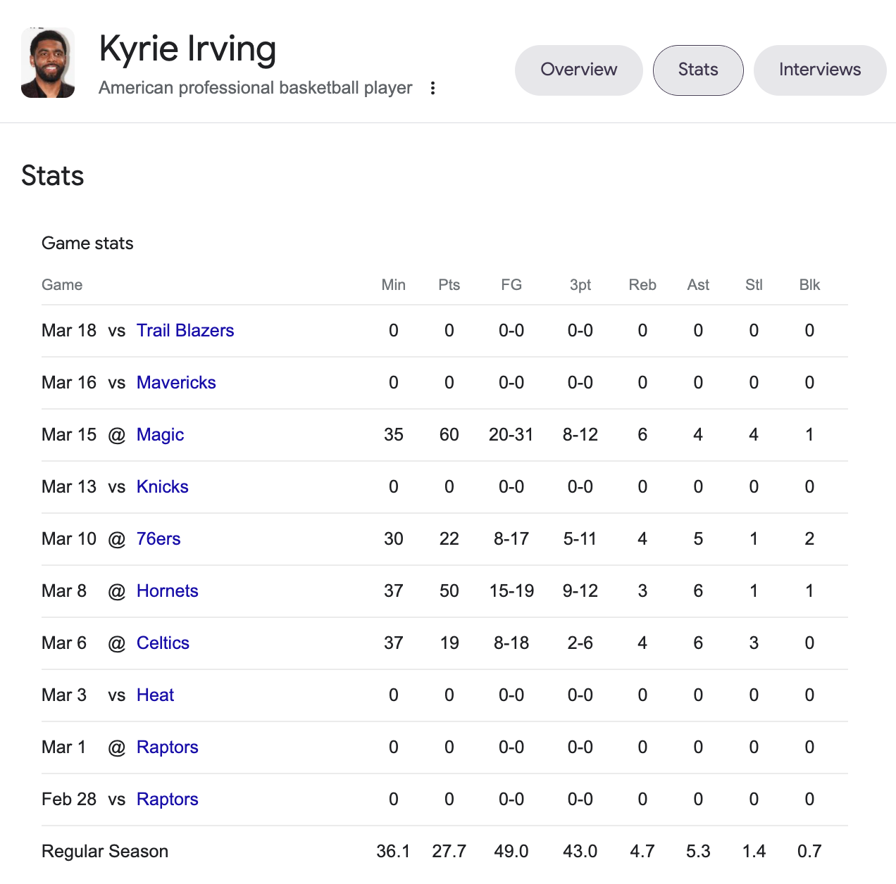 Plus, how crazy is it that as a part time basketball player, Irving is averaging 44 points per game? Look at this stat sheet below, and tell me if you’ve ever seen anything like it. Actually, let me answer that for you: you haven’t.