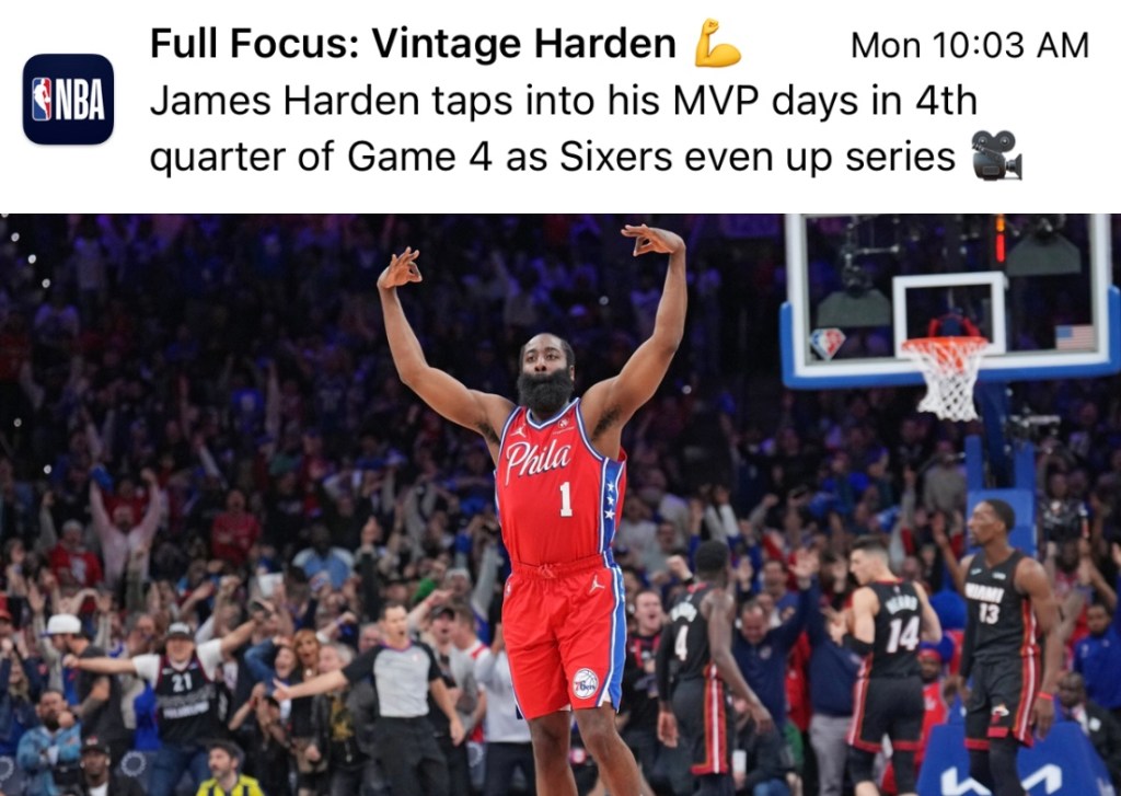 I’m rooting for Harden, but I’m expecting the 76ers to be eliminated by the time most people read this.